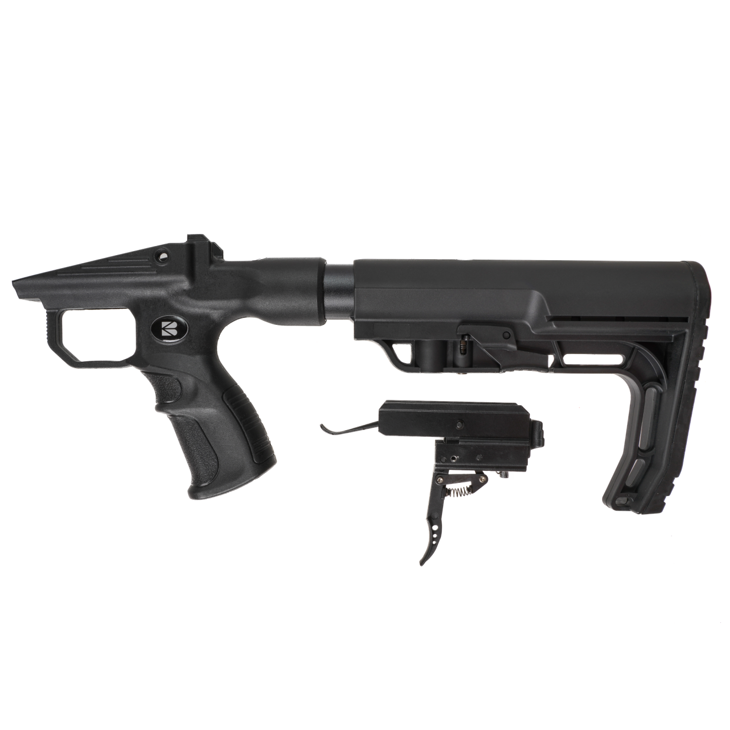 Looking for the perfect upgrade for your crossbow? The BALLISTA BAT REVERSE L-Buttstock Upgrade Kit is here to elevate your shooting game. Enhance your crossbow experience with this kit that is compatible exclusively with BALLISTA BAT Reverse. Not only does it come with a specially designed L-Buttstock, but it also boasts a unique trigger system tailored for the Ballista Bat Reverse L-Buttstock. Don't miss out on this opportunity to optimize your crossbow's performance.