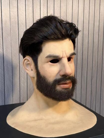Bearded Realistic Silicone Mask – Full Head Male Face Mask for Halloween, Cosplay & Theater