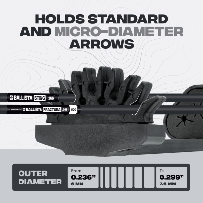 - Universal Arrow Compatibility – Fits standard arrows 0.299" (OD: 7.6 mm) and micro-diameter arrows 0.236" (OD: 6 mm), perfect for Ballista Sting and Fractura models as well. Not compatible with arrows 0.346" ( 8.8 mm ) OD.