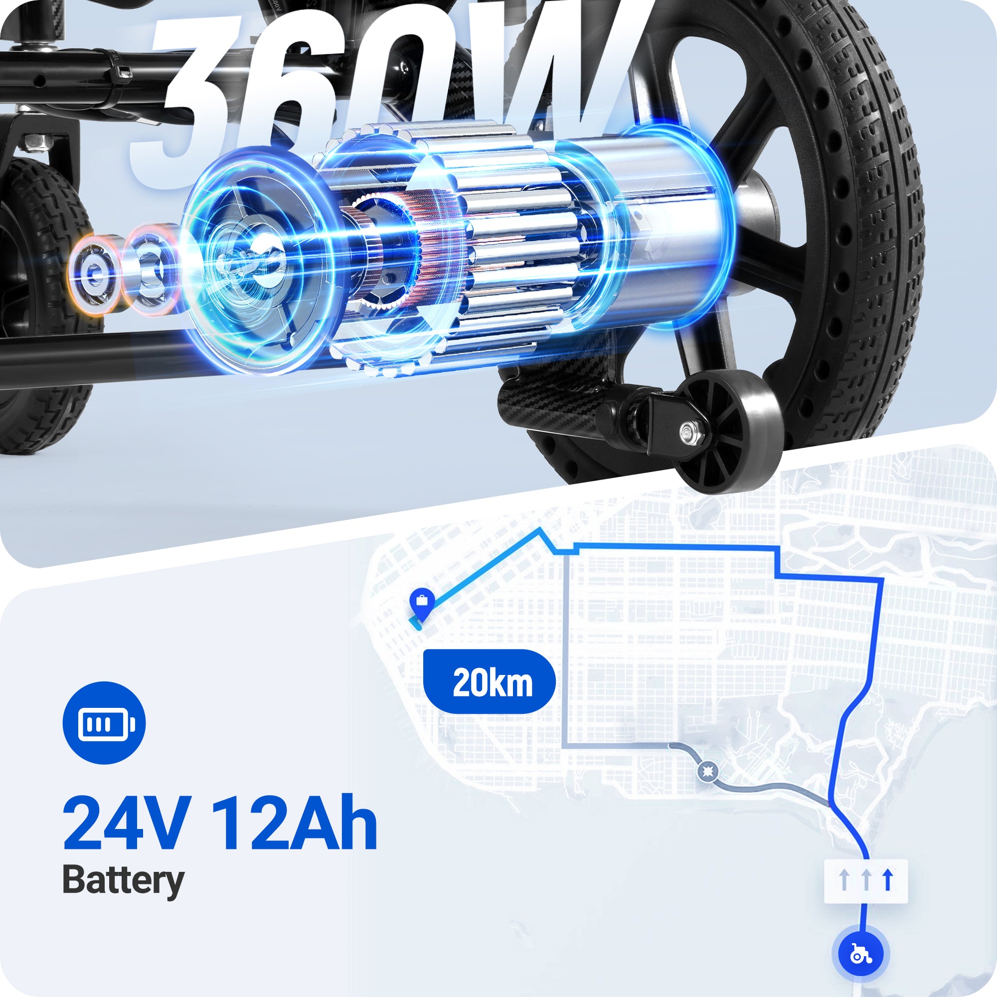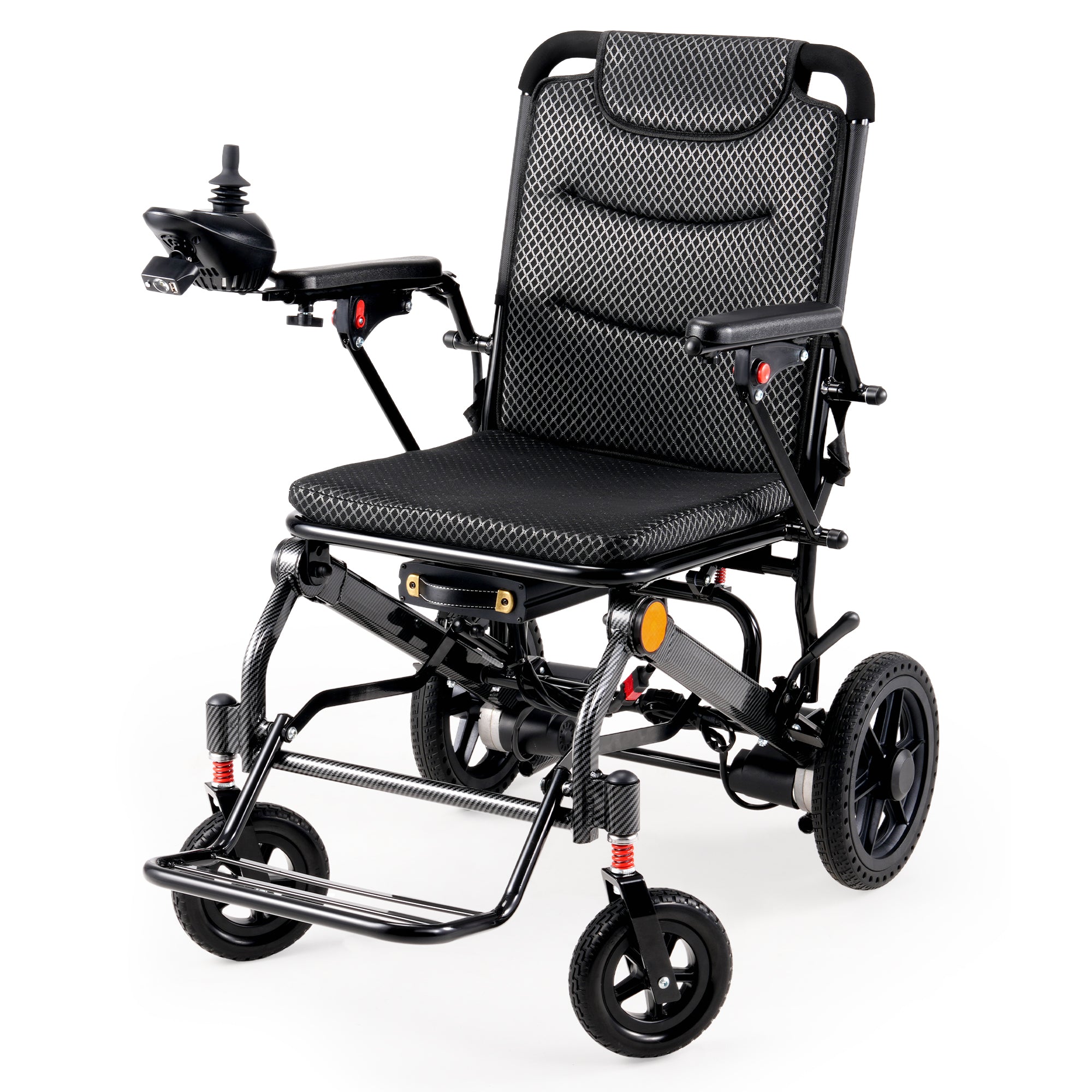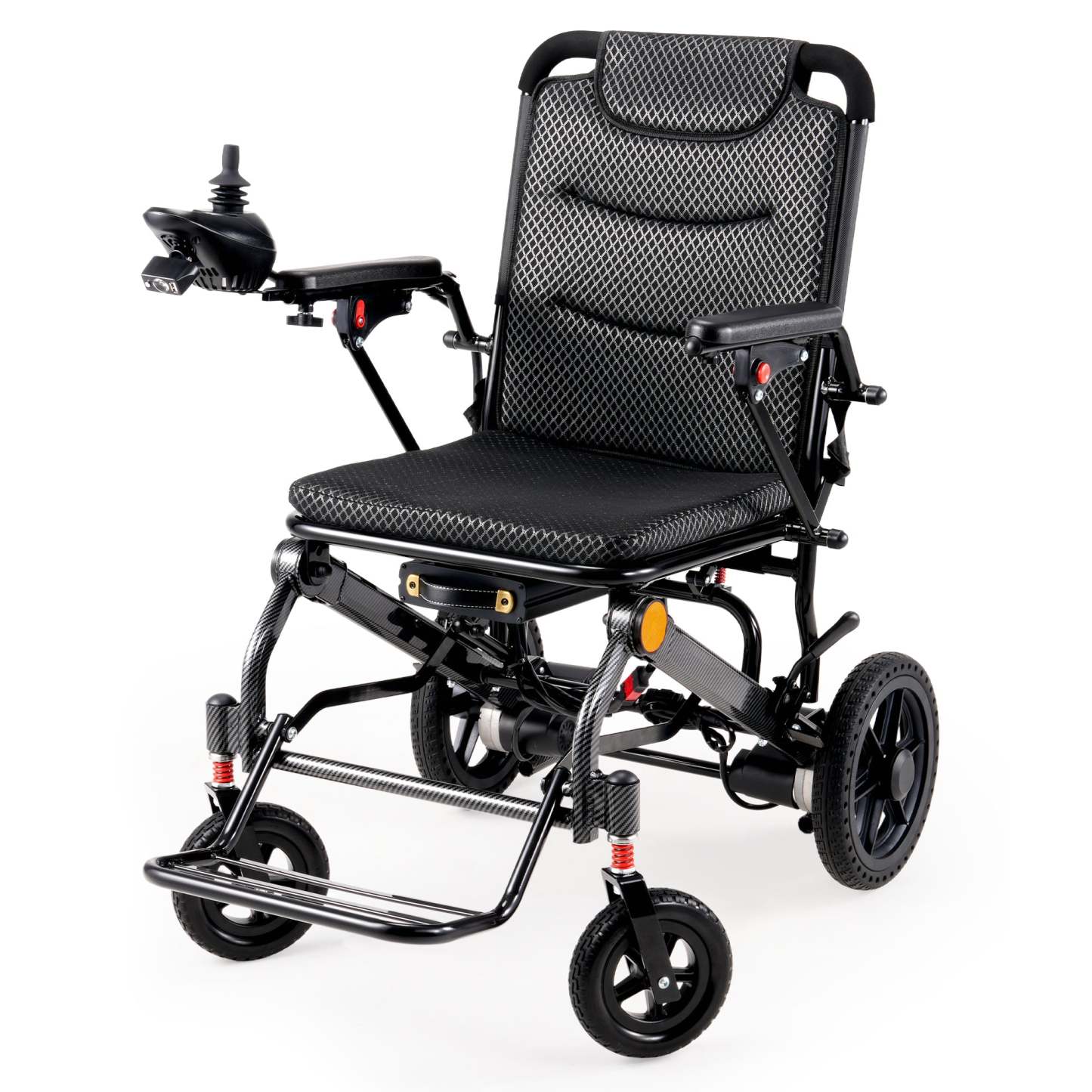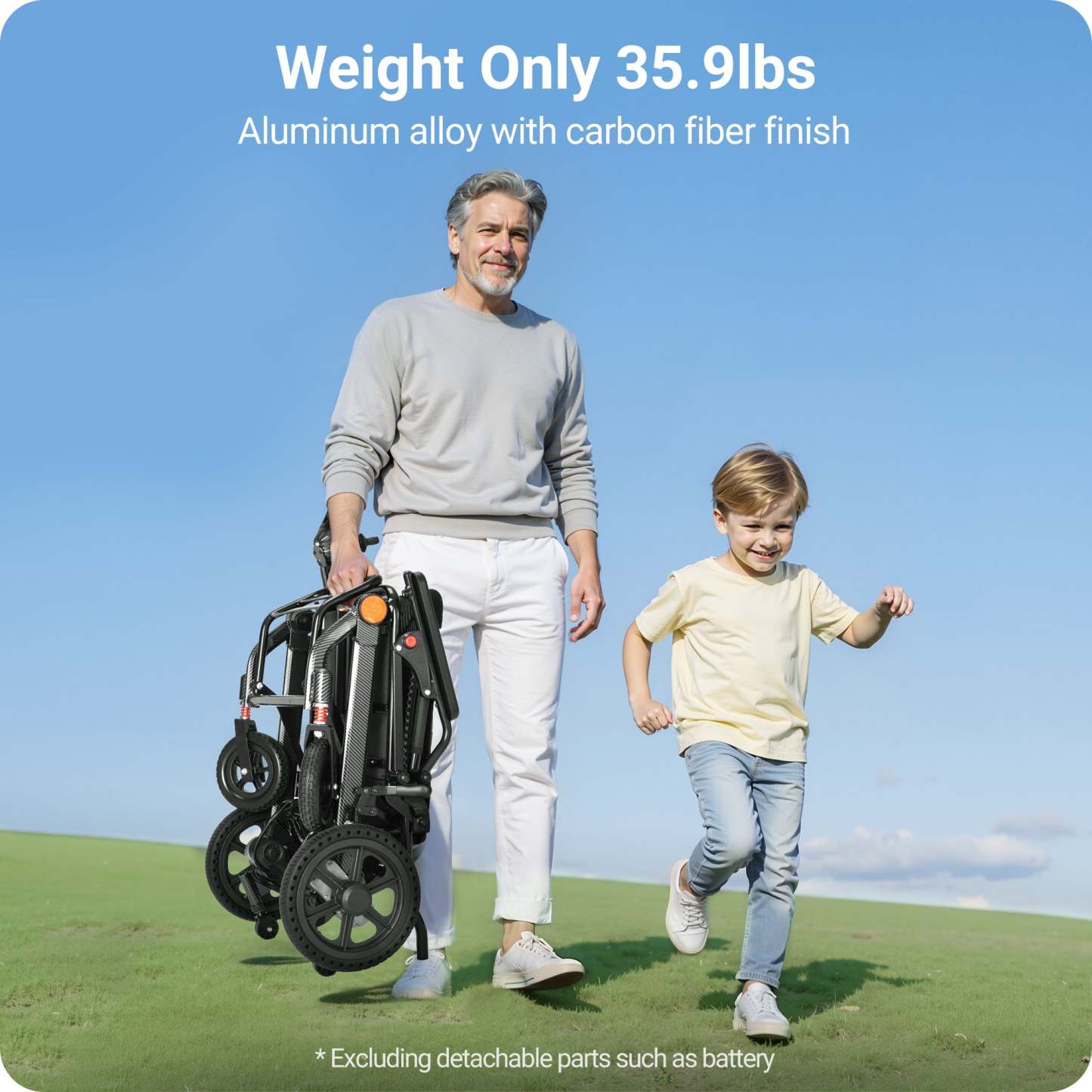 Only 35.9lbs, 20 KM long range, Soft Seat, Travel Ready, All-Terrain, Upgrade comfortable, Wider seat, Smooth & Safe Driving, Lightweight Folding Electric Wheelchair