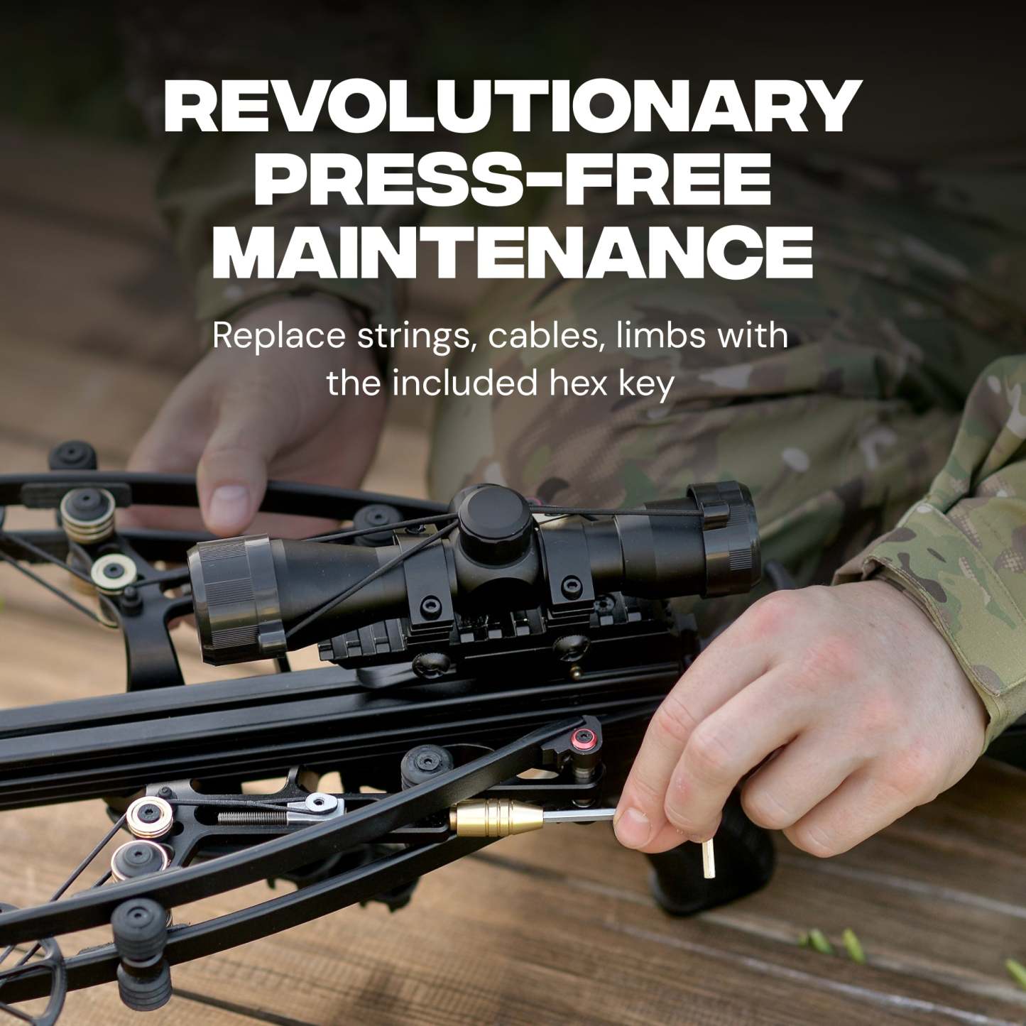 Hawkwing is the world’s first hunting crossbow that needs no press for maintenance. In the field you can replace the string, cables, or even limbs with a standard hex key. The robust dual‑cable system keeps limbs perfectly synchronized to reduce vibration and deliver cleaner energy into the arrow. The result is a compact hunting crossbow that’s easier to service, more durable, and incredibly consistent.