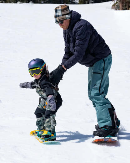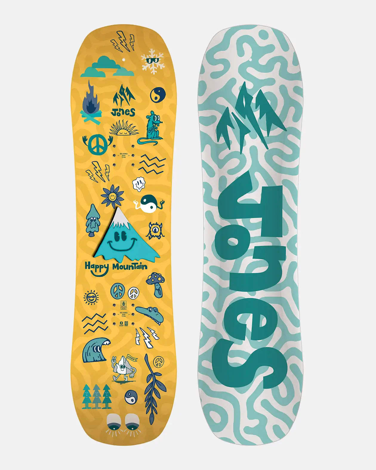 The Happy Mountain is a new kids board made to get young rippers sliding and gliding with ease. It features a 3D Base with a wide middle hull for stability and curved side channels that grip the snow when turning without the danger of a metal edge. The Happy Mountain also includes a center mounted foam traction pad for boot grip and riding the board like a sled.
