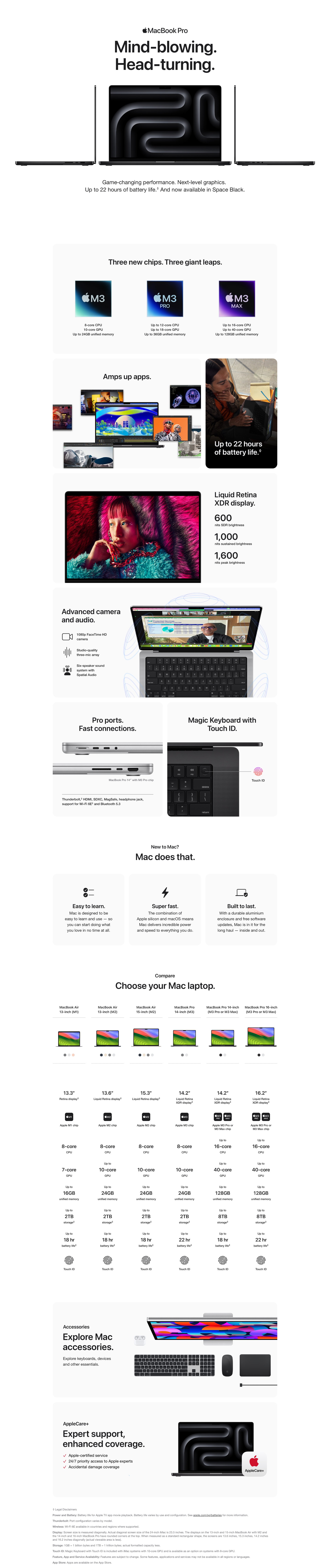 · RESPONSIVE UNIFIED MEMORY AND STORAGE — Up to 36GB (M3 Pro) or up to 128GB (M3 Max) of unified memory makes everything you do fast and fluid. Up to 4TB (M3 Pro) or up to 8TB (M3 Max) of super-fast SSD storage launches apps and opens files in an instant.2
