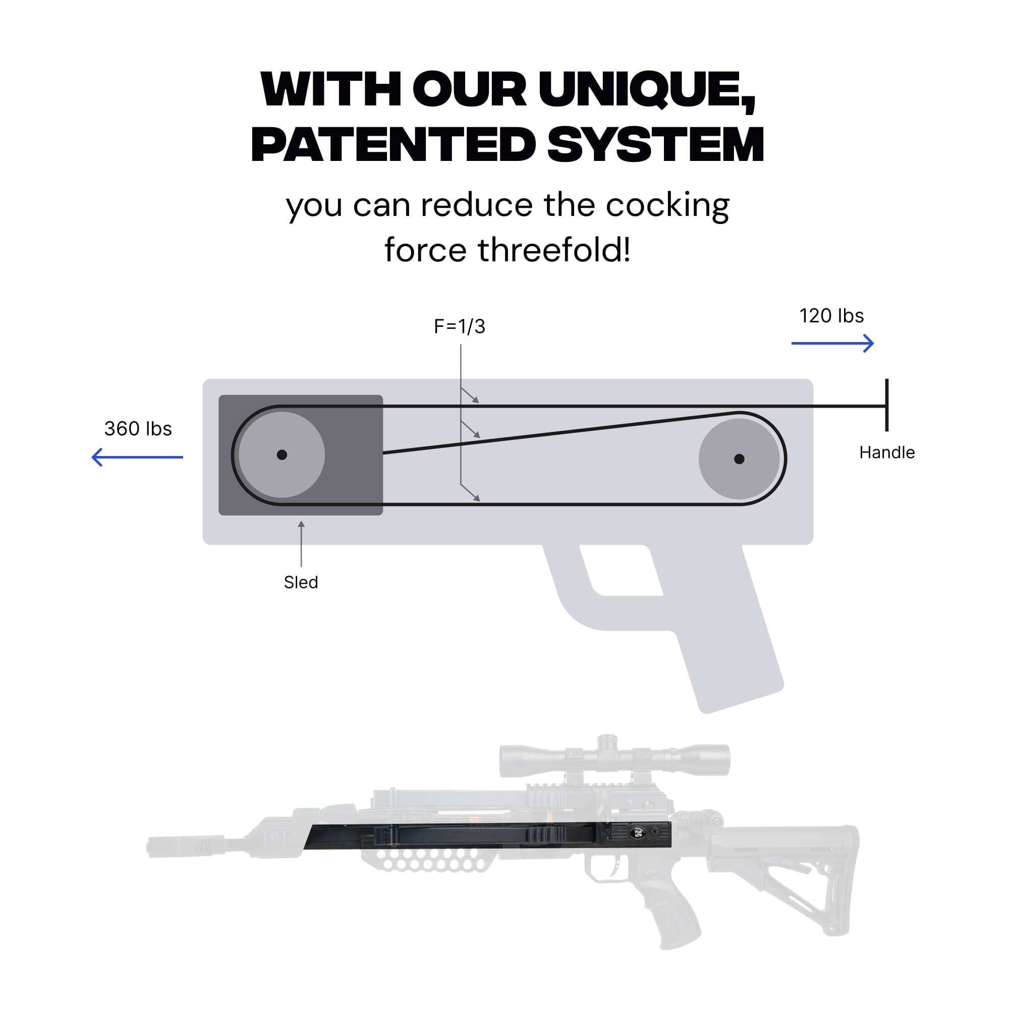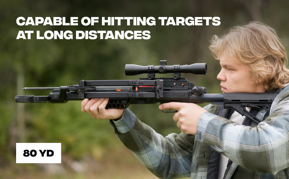The built-in self-retracting cord tensioner makes the MEGABAT Reverse the fastest loading crossbow in the world, allowing for quick, easy, and silent reloading. Weighing just 9.28 lbs and constructed from high-grade materials such as metal, polymer, and 6061 T6 aluminum, this crossbow combines durability with portability, making it an ideal companion in any environment.