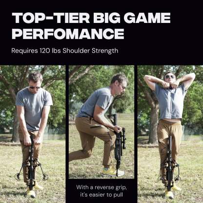 The BALLISTA MEGABAT Reverse is a revolutionary full-size reverse-draw compound crossbow, designed for Hunting, Fishing, and Target Shooting. It offers top-tier speed and power, with a 360 lbs draw weight and bolt velocity reaching up to 450 fps. This makes it the perfect choice for long-distance hunting, accurate target shooting, and versatile fishing.