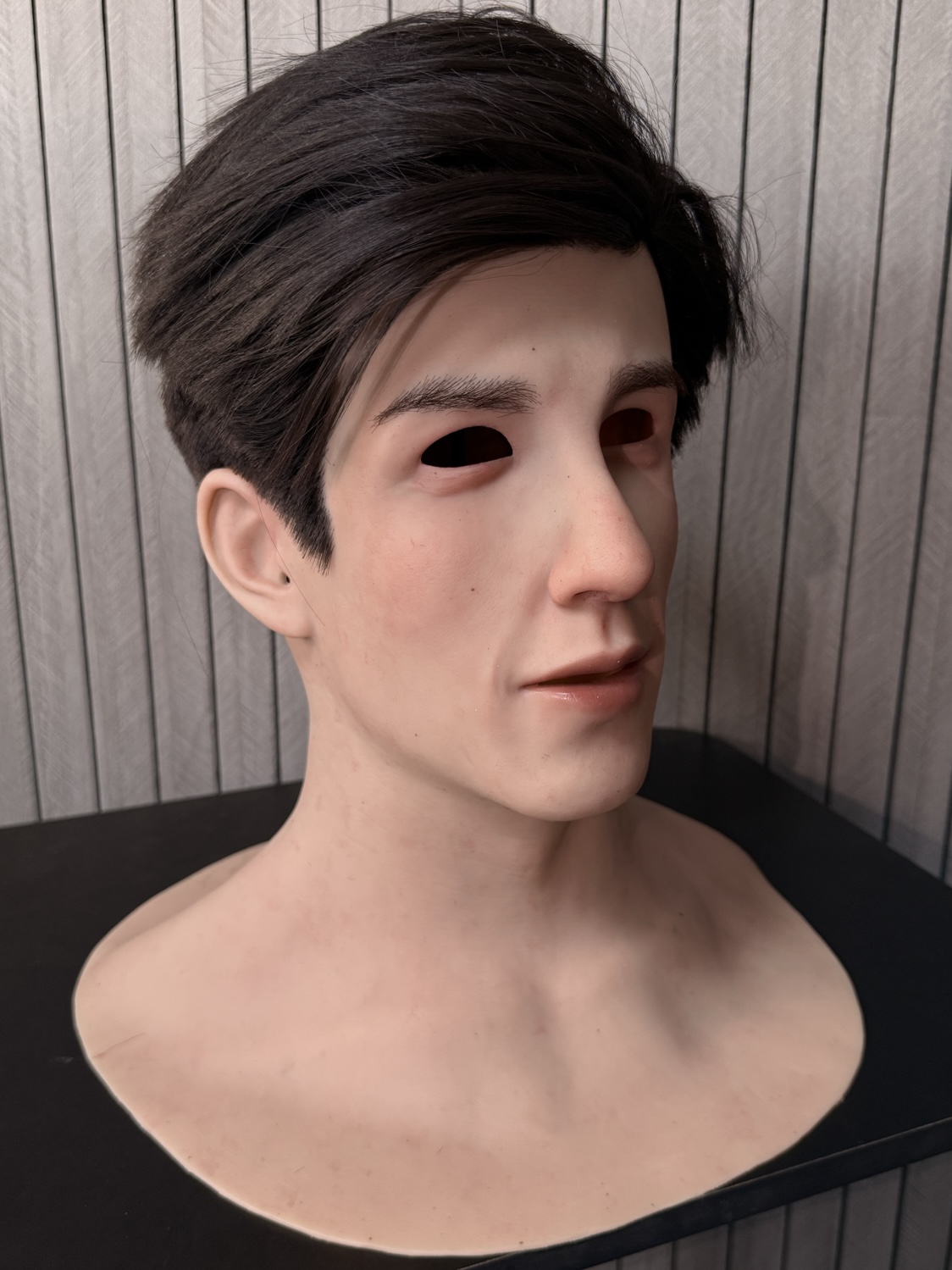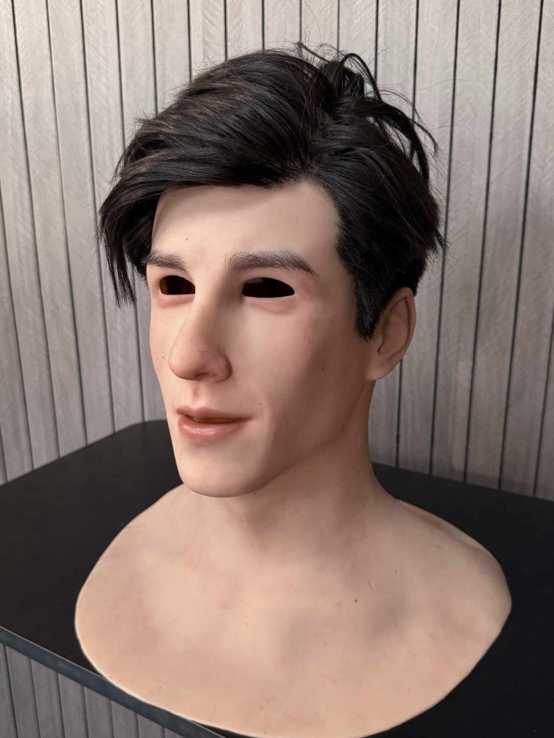 Realistic Long-Haired Silicone Mask – Handsome Male Full Head Mask for Halloween, Cosplay & Theater