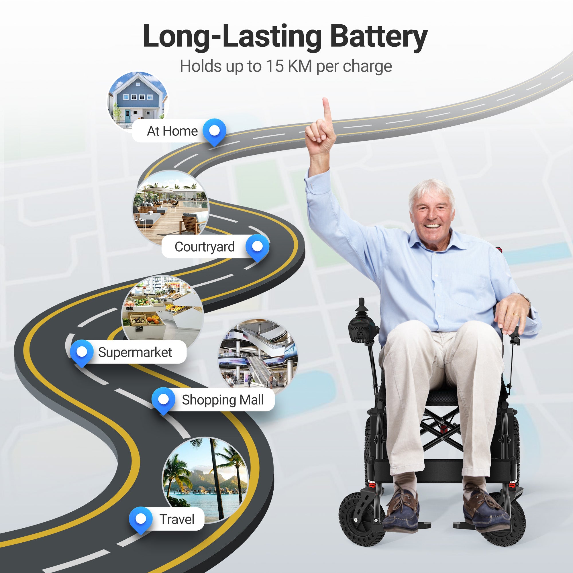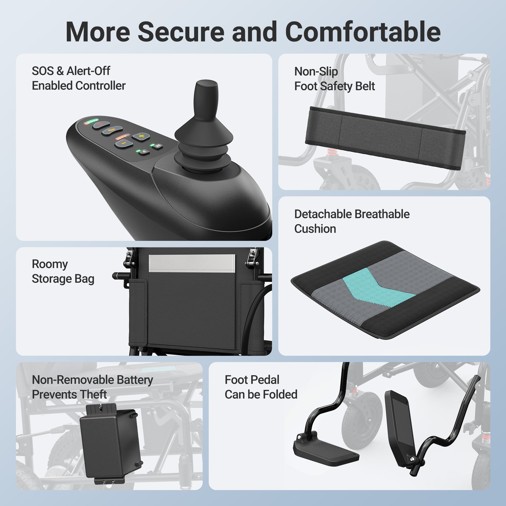 Powerful Power and Range,15 Miles Long Travel Range, All Terrain Motorized Wheelchair,Comfortable Experience,Flexible and Precise Control,Safe and Reliable