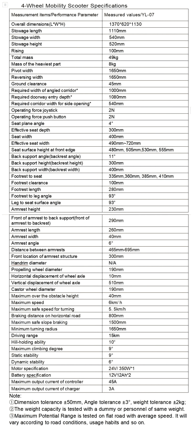 Specification-YL07: